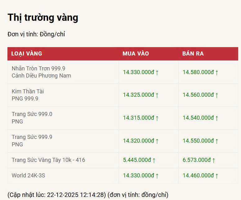Giá vàng ngày 22/12/2025: Tiếp tục tăng mạnh, mục tiêu mới đang mở ra
